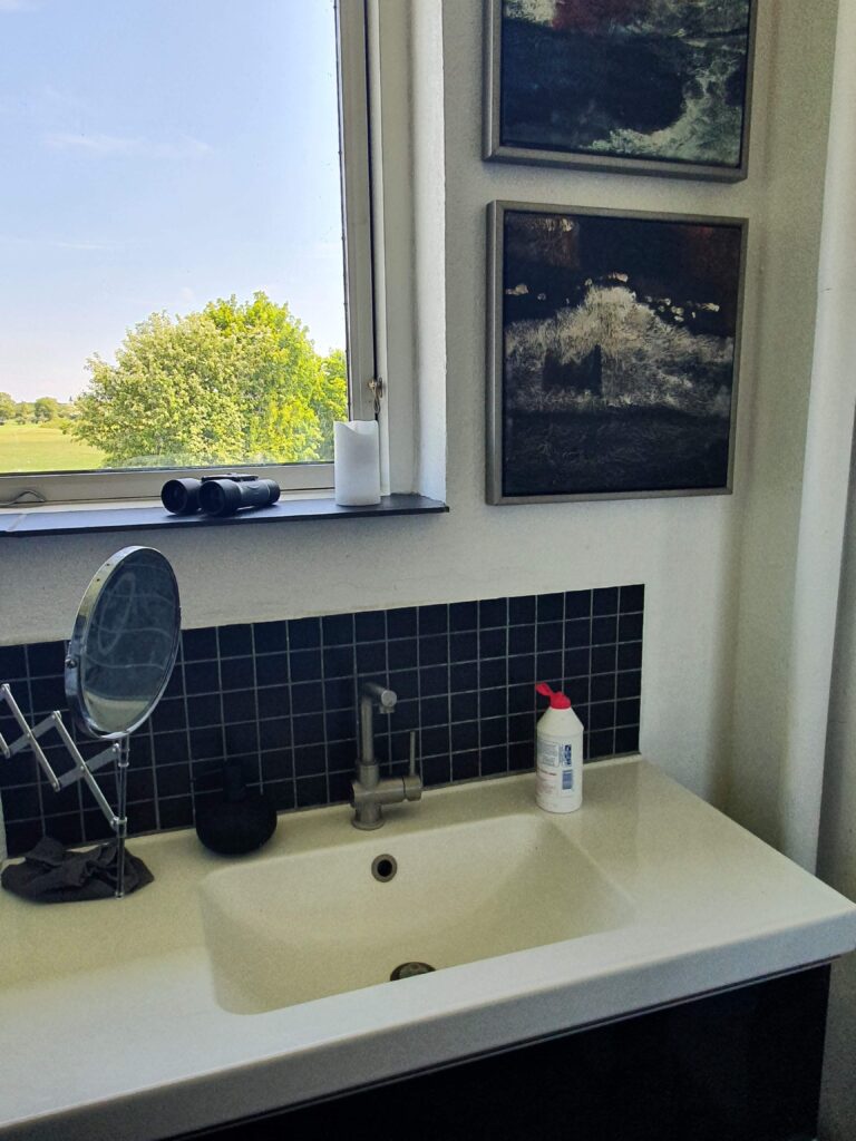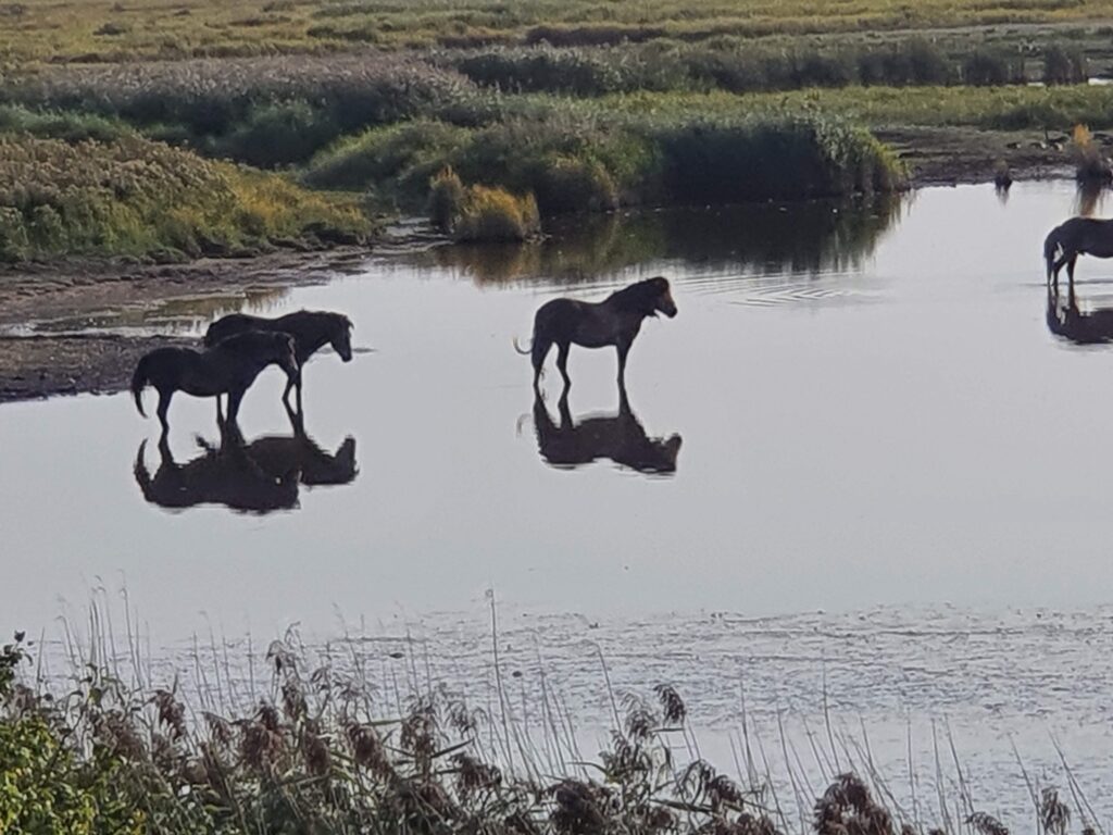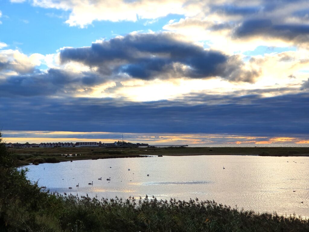 Fra pejsehjørnet er der frit udkig over sø og hav. Herfra kan fugletræk følges når de mellemlander på søen. Flokke af stære samles og danner hurtigt voksende mønstre og “sort sol”.